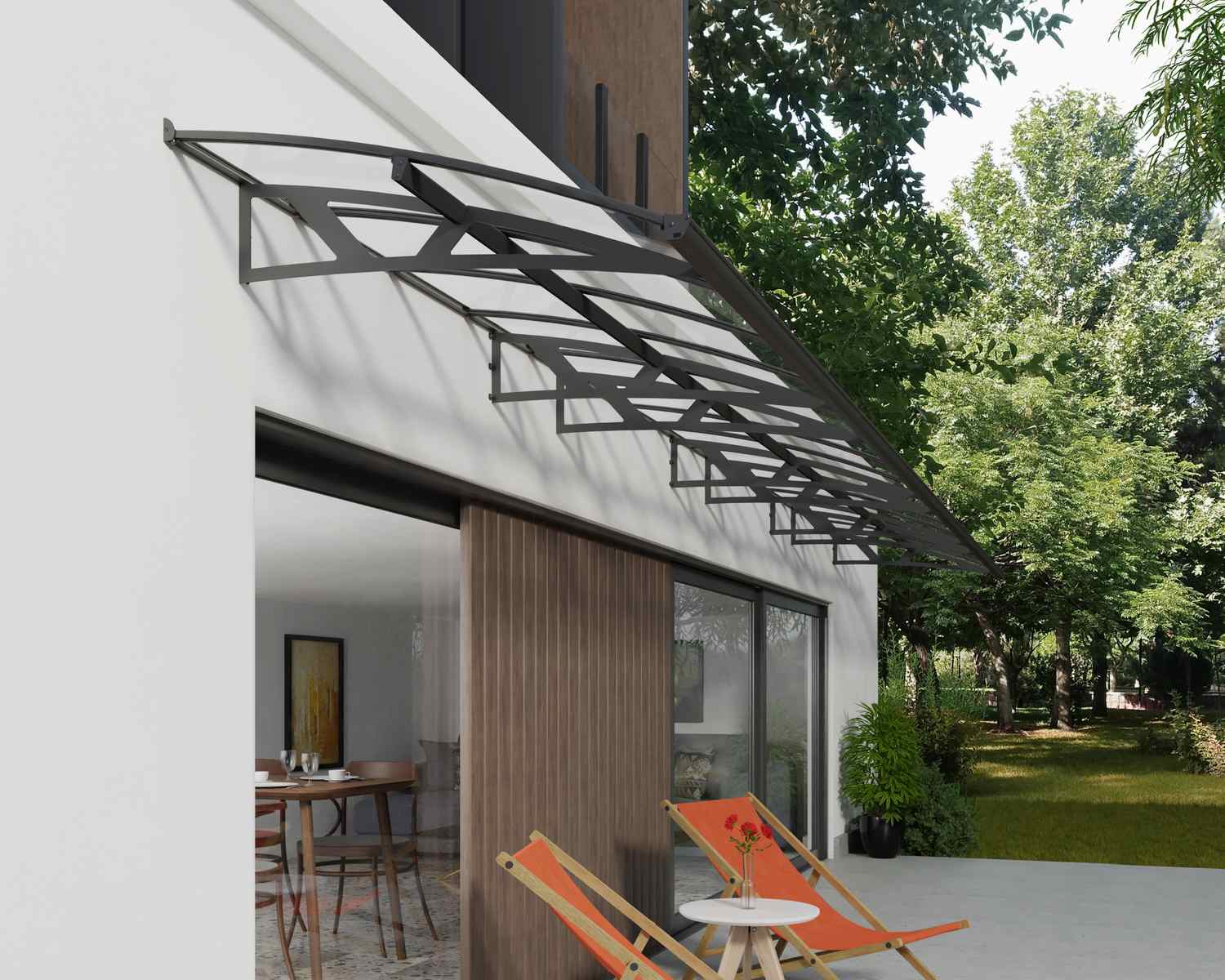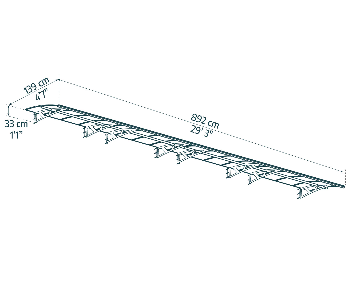 Amsterdam Pultvordach 892 cm x 139 cm x 33 cm in Grau, mit Transparente Paneele