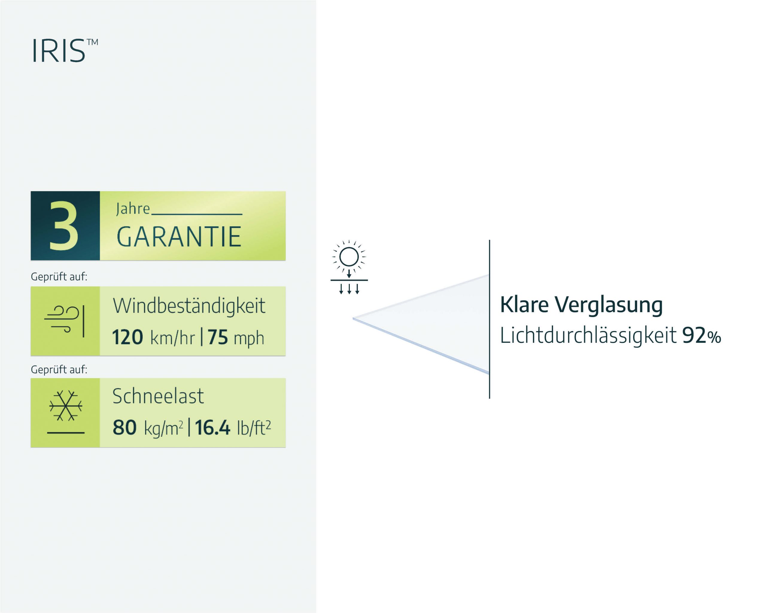 - Lebenslang beständige Verglasung; bricht nicht, wird nicht spröde und vergilbt nicht mit der Zeit.