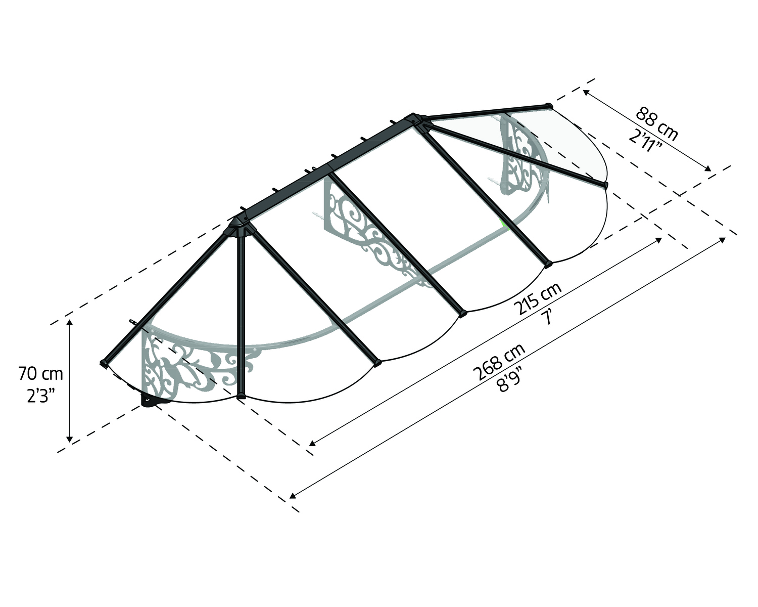 Lily Vordach 268 cm x 88 cm x 70 cm in Schwarz, mit Transparente Paneele