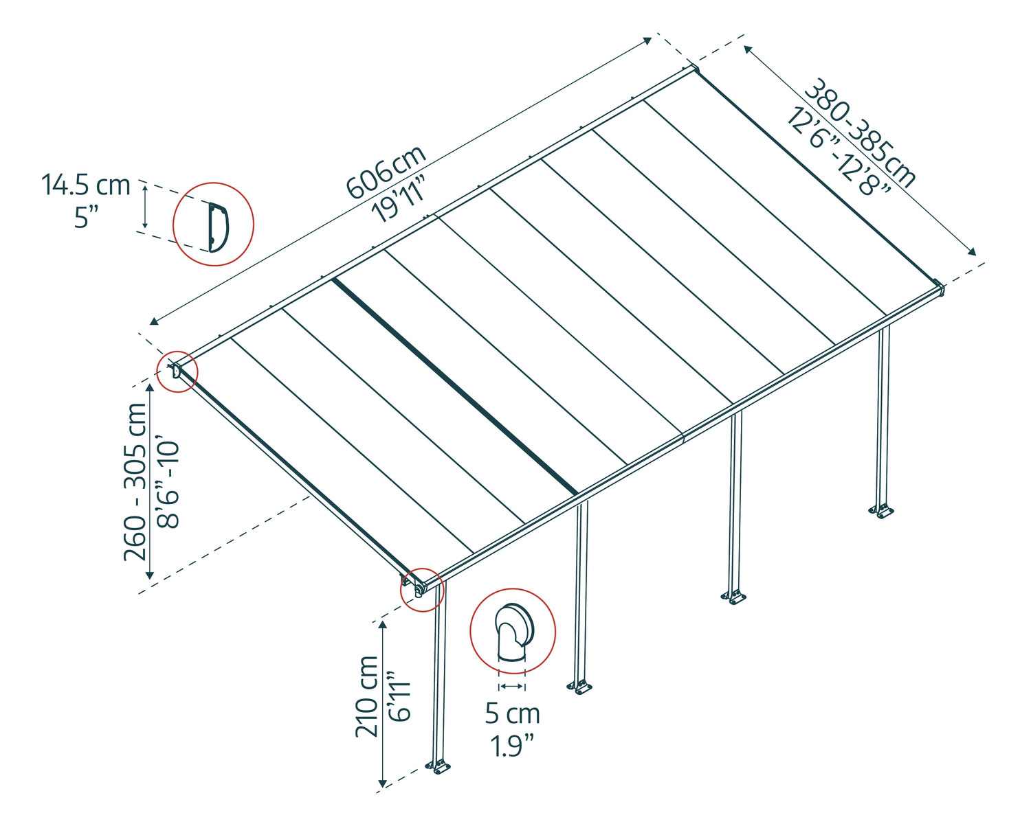 Genießen Sie warme Tage, kühle Nächte und alles zwischendurch unter der extrabreiten Feria-Terrassenüberdachung. Das Feria Terrassenüberdachungs-Bausatz ist eine attraktive, wartungsfreie Überdachungslösung für verschiedene Außenanwendungen wie z.B. eine Terrassenüberdachung, eine Sonnenlounge oder gar ein Carport. Schützen Sie Ihre Wertsachen vor dem unberechenbaren Wetter und den schädlichen UV-Strahlen mit dieser leistungsstarken Konstruktion. Sie verfügt über flexible positionierbare Pfosten, mit denen Sie die gewünschte Höhe am Wandanschluss, den Abstand zum Haus und zwischen den Pfosten an der Vorderseite einstellen können. Es wurde so konzipiert, dass es von 2 Personen einfach zusammengebaut werden kann. Dabei kommt das Click N' Lock-Dachsystem zum Einsatz, das eine sichere und einfache Montage ermöglicht und Undichtigkeiten verhindert. Es erfordert keine Erfahrung, keine besonderen Fähigkeiten und kein Spezialwerkzeug. Die Feria Übedachung bietet Ihrer Familie eine elegante, schön gestaltete, robuste Ergänzung zu Ihrem Außenbereich, die viele Jahre lang stabil und rostfrei bleibt.
