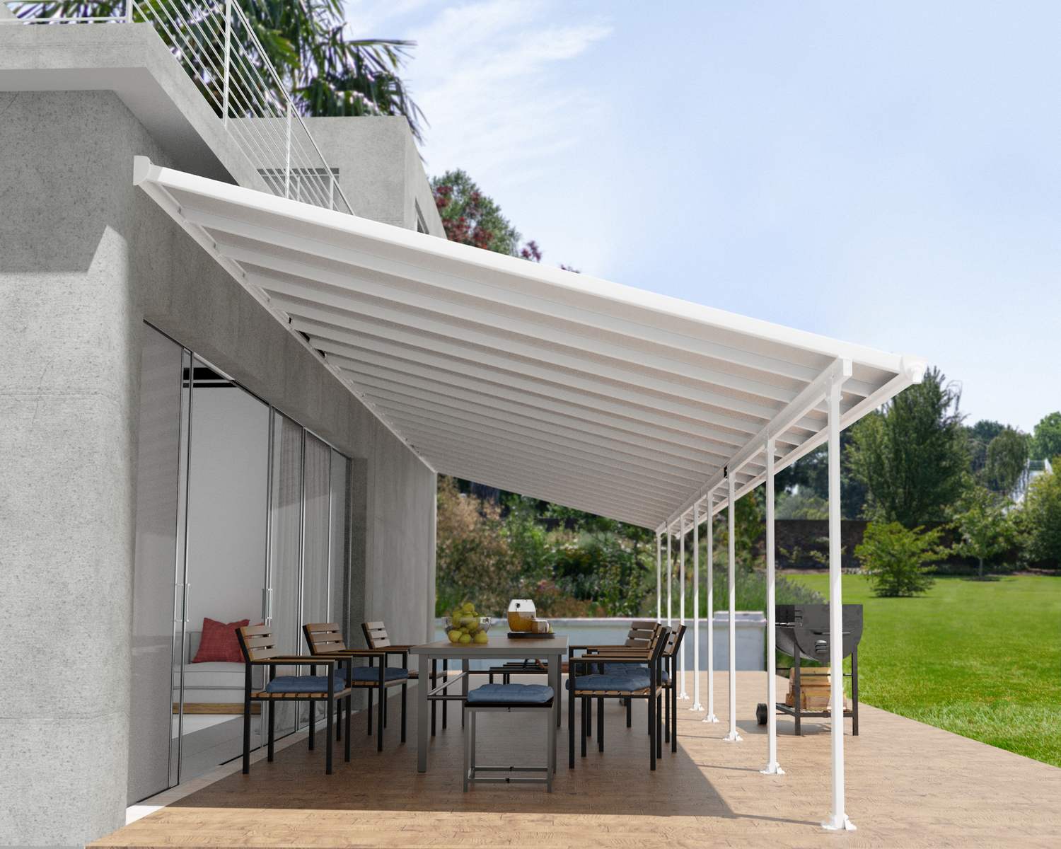 - Die Terrassenüberdachungen sind in verschiedenen Größen und Farben erhältlich. Klicken Sie hier, um weitere Bausätze für Terrassenüberdachungen zu finden.