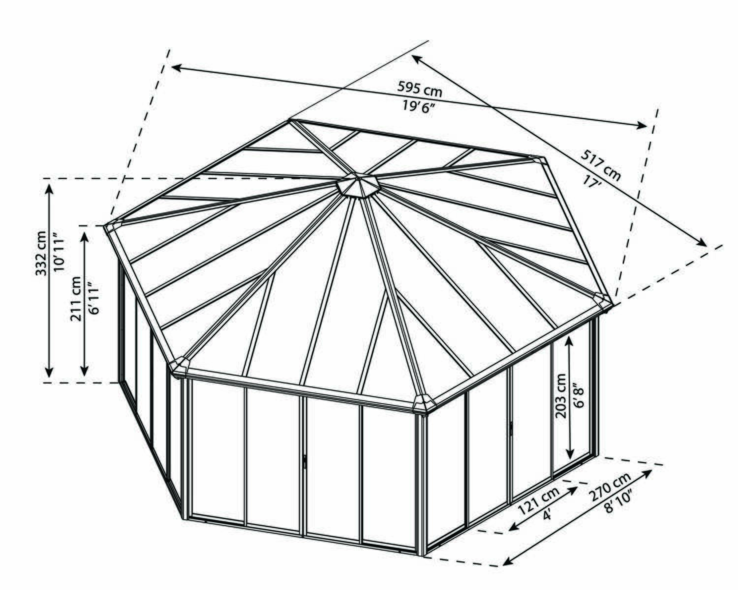 Mehr Platz bedeutet zugleich auch mehr Zeit mit Ihren Liebsten im Freien zu verbringen (und auch, dass Sie mehr Zeit für sich selbst haben). Das Modell Garda ist ein extragroßer, umschlossener Pavillon, in dem Sie die Schönheit der Natur gemütlich von drinnen aus genießen können. Mit einer Schiebetür an jeder der sechs Seiten, der Möglichkeit, jede Tür mit einem Fliegengitter zu versehen, und einer effektiven Wärmedämmung ist diese Gartenstruktur als geräumiger Außenraum für jede Jahreszeit und jedes Wetter konzipiert. Der als All-inclusive-Bausatz gelieferte DIY Pavillon kann für Mahlzeiten im Innen- und Außenbereich, als herrlicher Ort für Ihre Partys, als Rückzugsort für Männer oder als Ihr eigenes privates Spa im Außenbereich, z.B. als eine Whirlpoolüberdachung verwendet werden. An nur einem Wochenende können Sie Ihr Haus deutlich aufwerten und haben dabei immer noch genügend Zeit, sich zurückzulehnen und Ihren neuen, sonnigen Raum zu genießen.
