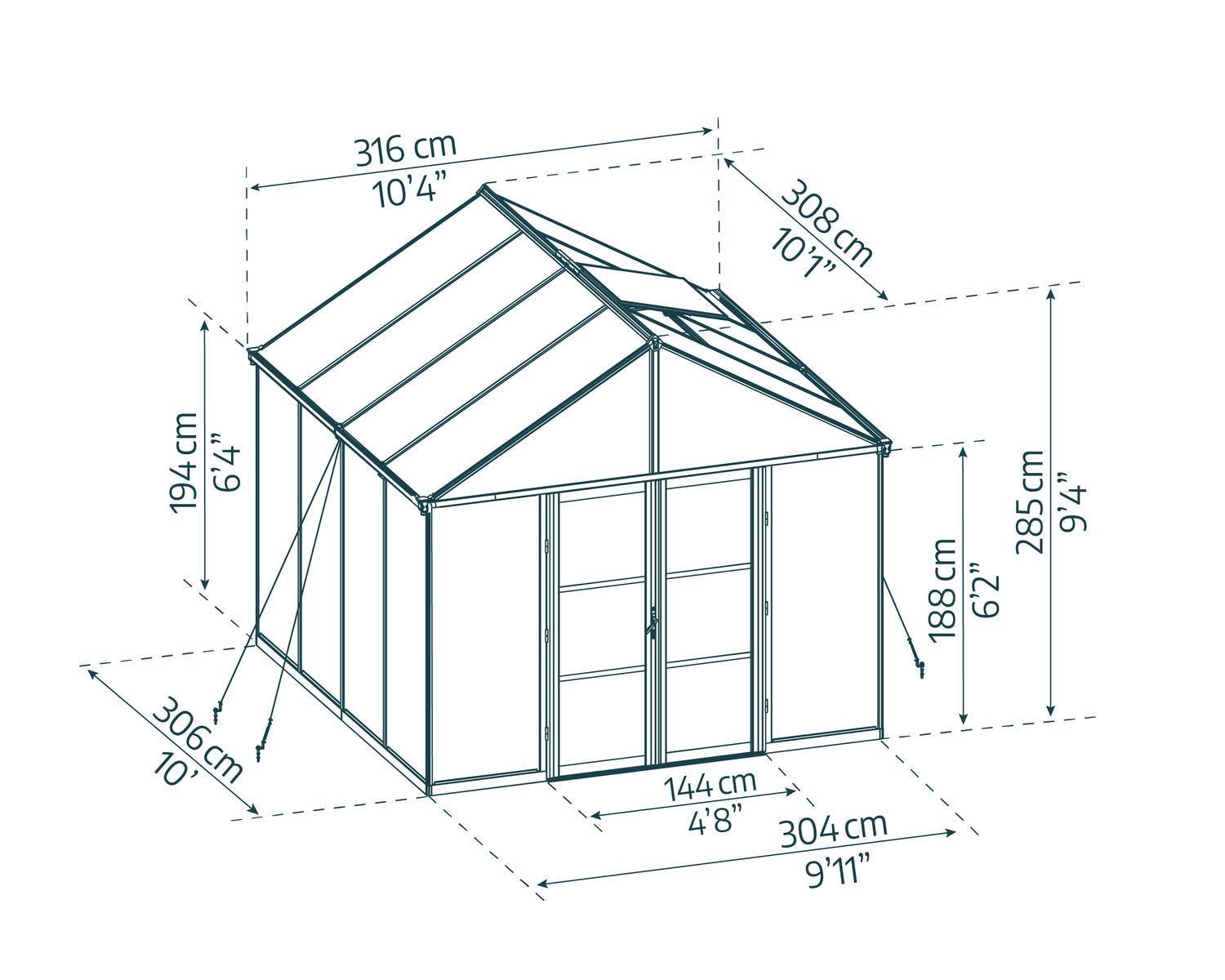 - Resilient Polycarbonate Panels: 10 mm multi-wall roof panels protect from strong sunlight exposure and extend your season by protecting plants from Fall frosts