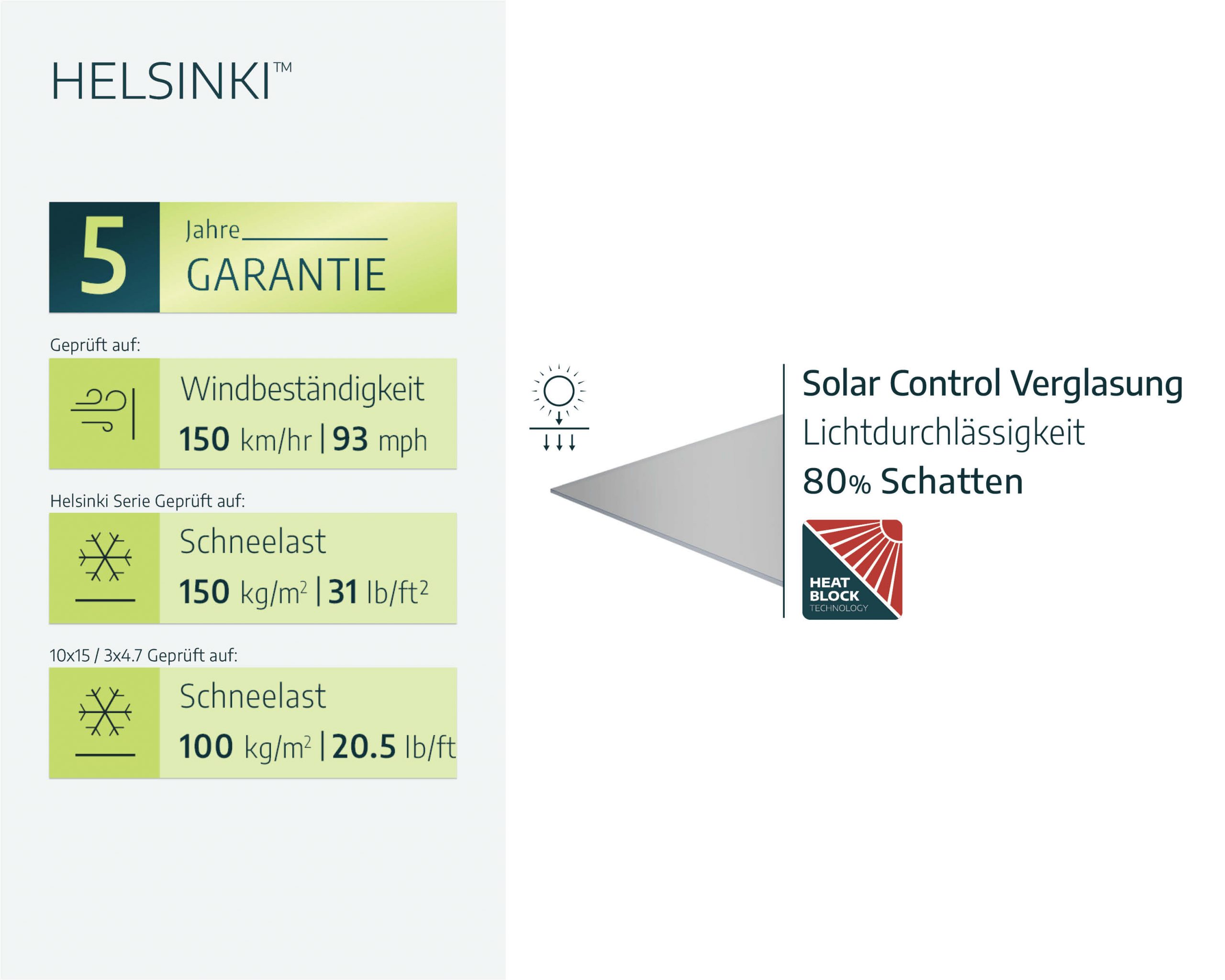 - Ganzjährige Wetterbeständigkeit: Wind-, schnee- und hagelfest. Getestet, um Winden bis zu 93 mph / 150 km/h und einer Schneelast von bis zu 150 kg/m² standzuhalten.