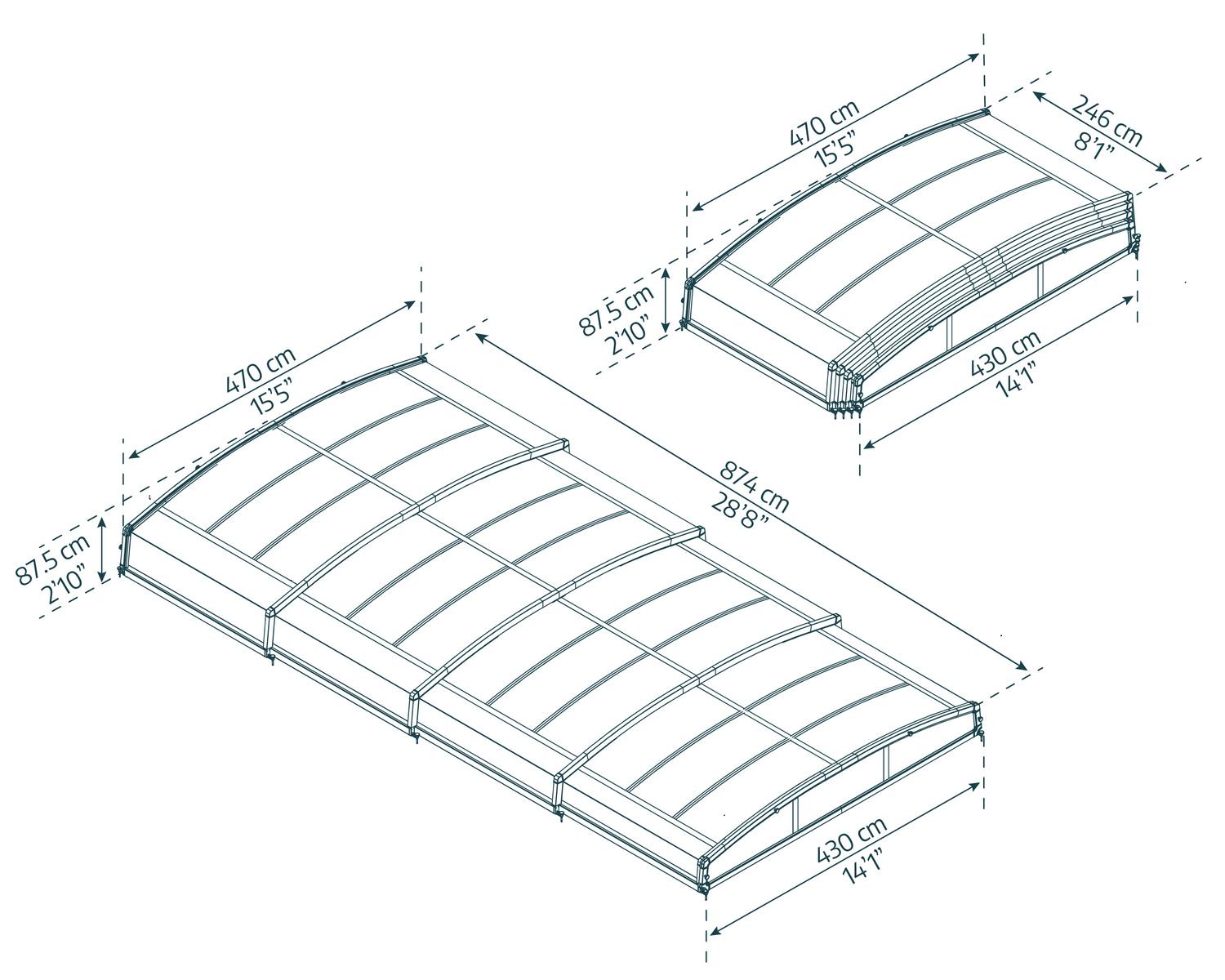Die niedrige Struktur, die UV-geschützten, kristallklaren Paneele und die moderne Ästhetik fügen sich wunderbar in Ihren Außenbereich ein. Die Paneele im Teleskopdesign passen nahtlos ineinander und schaffen so mehr Platz um Ihren Pool.