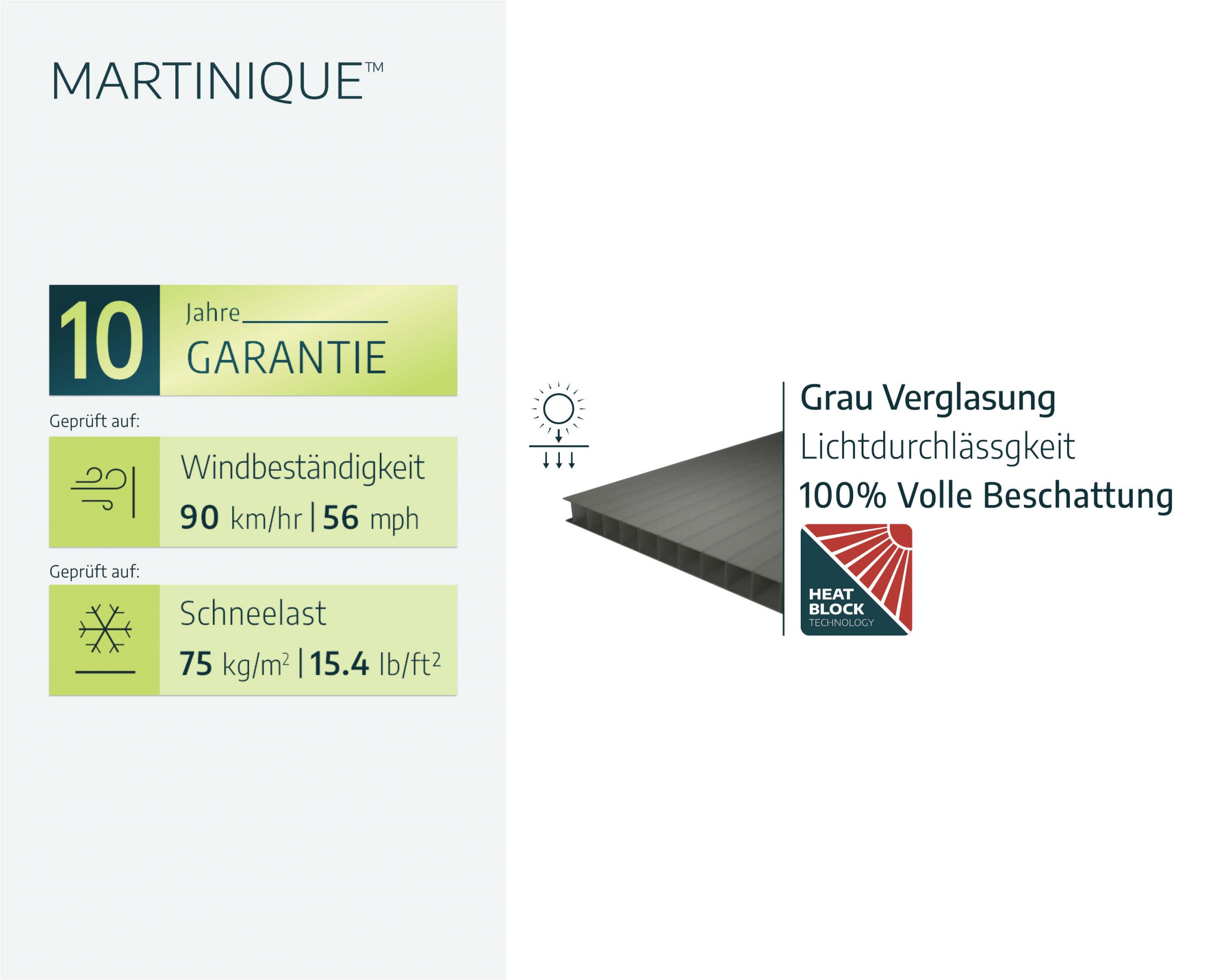 - Doppelwandige, graufarbene Bedachung aus Polycarbonat; vergilbt nicht und wird im Laufe der Zeit nicht auch nicht brüchig