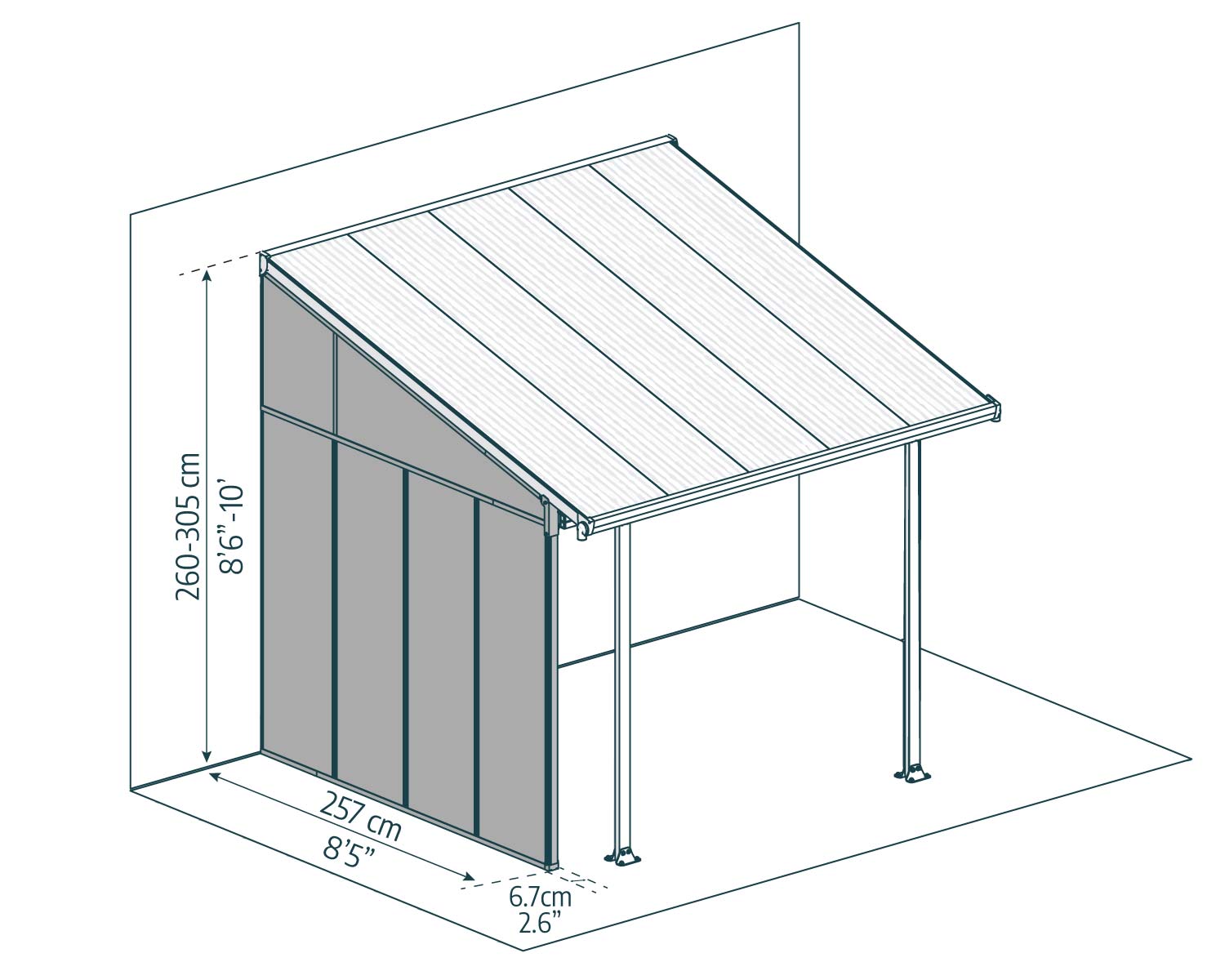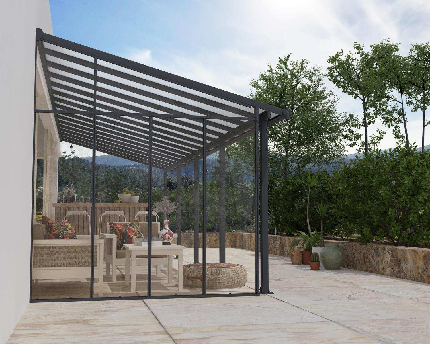 Möchten Sie die Seiten Ihrer Terrassenüberdachung abdecken? Eine Terrassenüberdachung schützt Sie und den darunter liegenden Bereich vor dem Wetter, sie ist kühl, spendet Schatten und kann auch als ein schönes Design für Ihr Haus dienen. Fügen Sie ihrer Terrassenüberdachung auch zusätzliche Seitenwände hinzu, um diesen Raum zu umschließen und etwas Privatsphäre, weniger Umgebungslärm und zusätzlichen Schutz zu erhalten! Diese Seitenwände sind vollständig transparent und ermöglichen eine klare Sicht auf den Außenbereich. Sie können auf einer oder beiden Seiten Ihrer Terrasse angebracht werden. Genießen Sie noch mehr Zeit im Freien mit den Seitenwänden für Terrassenüberdachungen von Palram – Canopia!